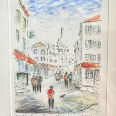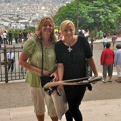 My 2012 trip to France included, of course, another trip to Montmartre. I had described this magical place to my sister, Kathy, and we decided it would be our first stop when she and my mother arrived in Paris. Yes, before the Eiffel Tower. Yes, before the Louvre. As soon as the luggage was placed in our tiny hotel room next to the Arc de Triomphe, we started the upward journey of 300 steps. But it was worth every single solitary step, at least to Kathy and me. Our mother wasn’t quite so convinced. After resting our calves for a bit on a half-stone wall, we continued to the square where we met the artists and browsed their works. After looking at hundreds of paintings, we made our purchases before starting the downhill trek.